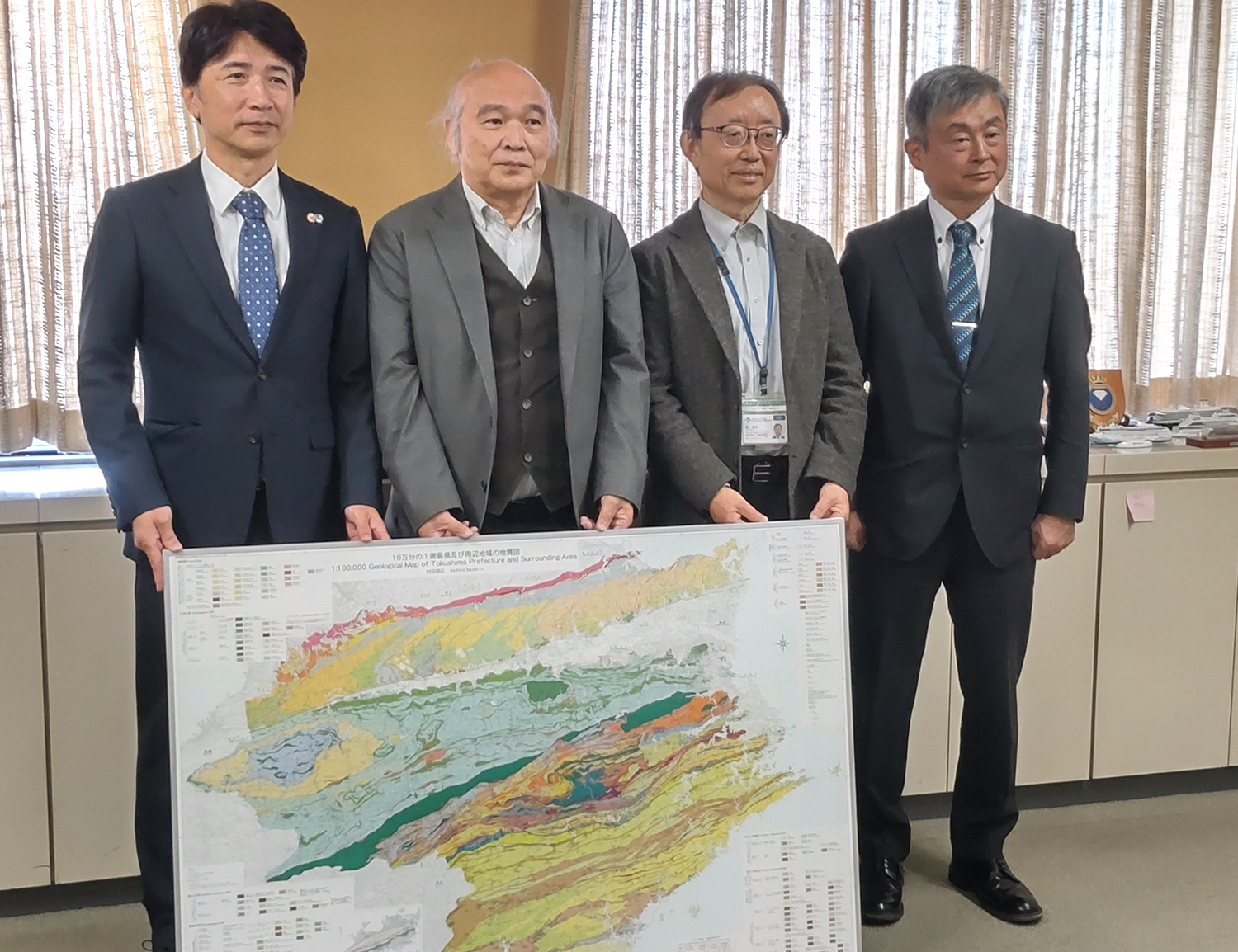 お知らせ 村田技術顧問調査作成の地質図を徳島県に贈呈 2025.11.21 この度、弊社の村田明広技術顧問(徳島大学名誉教授)が長年にわたり行いました地質調査を 「10万分の1徳島県及び周辺地域の地質図(徳島大学環境防災研究センター出版)」としてとりまとめられ、11月20日に徳島県に贈呈いたしました。 ◆本地質図作成の意図について◆ 徳島県全域を対象とした地質図として15万分の1徳島県地質図(徳島県、1972)があり、地質調査、研究等で長く使用されてきました。しかしながら、発行されてから50年以上が経過し、その間の多くの研究成果を活かした地質図が作成されておりませんでした。 このため、村田技術顧問自ら25年の長きにわたり地質調査を行い、徳島県全域を一枚の地質図として見ることができ、より詳細な地質分布が表示できるようにとのことから、「10万分の1徳島県及び周辺地域の地質図」としてとりまとめられました。 本日11月21日より2日間「建設フェア四国2025 ... 「建設フェア四国2025in松山」閉幕のご報告